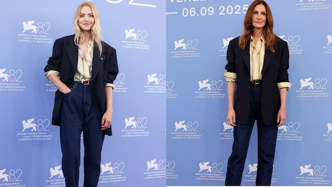 Amanda Seyfried was so impressed by the look that she asked Robert's if she could borrow it. The Mamma Mia actress commented on an Instagram photo of Elizabeth Stewart's, who is Robert's and her stylist and asked if she could wear the same outfit. In a comment she wrote, "Please let me wear the same outfit." Shortly thereafter, Amanda was snapped at the photocall of her film, The Testament of Ann Lee, in a span of less than 48 hours after Julia walked the red carpet, wearing her clothes. While Julia opted for pumps, gold necklaces and a fall inspired makeup and manicure to go along with the look, Amanda chose open-toed sandals and opted away from jewellery on this one.