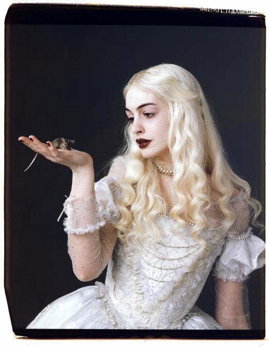 Stepping into the fantastical realm of Tim Burton’s imagination, Hathaway’s portrayal of the ethereal White Queen was all grace and grandeur. With her alabaster gowns, delicate gestures, and serene aura, she embodied a kind of dreamlike elegance — turning fantasy into fine art.