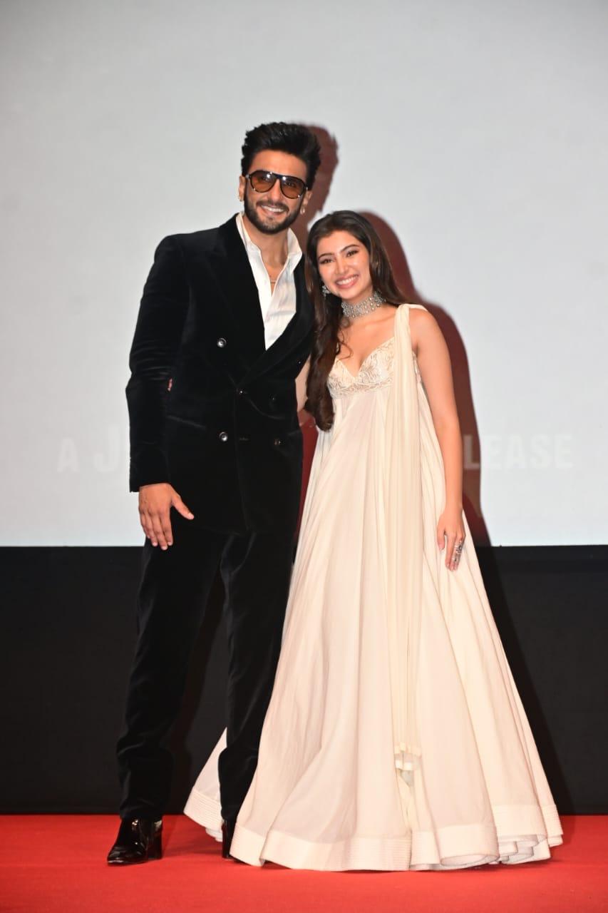 Ranveer Singh and Sara Arjun were all smiles at the trailer launch of their upcoming movie Dhurandhar where he wore a black velvet suit and she, an white embroidered anarkali ensemble. The event marks the actor's film comeback and her Hindi film debut.
