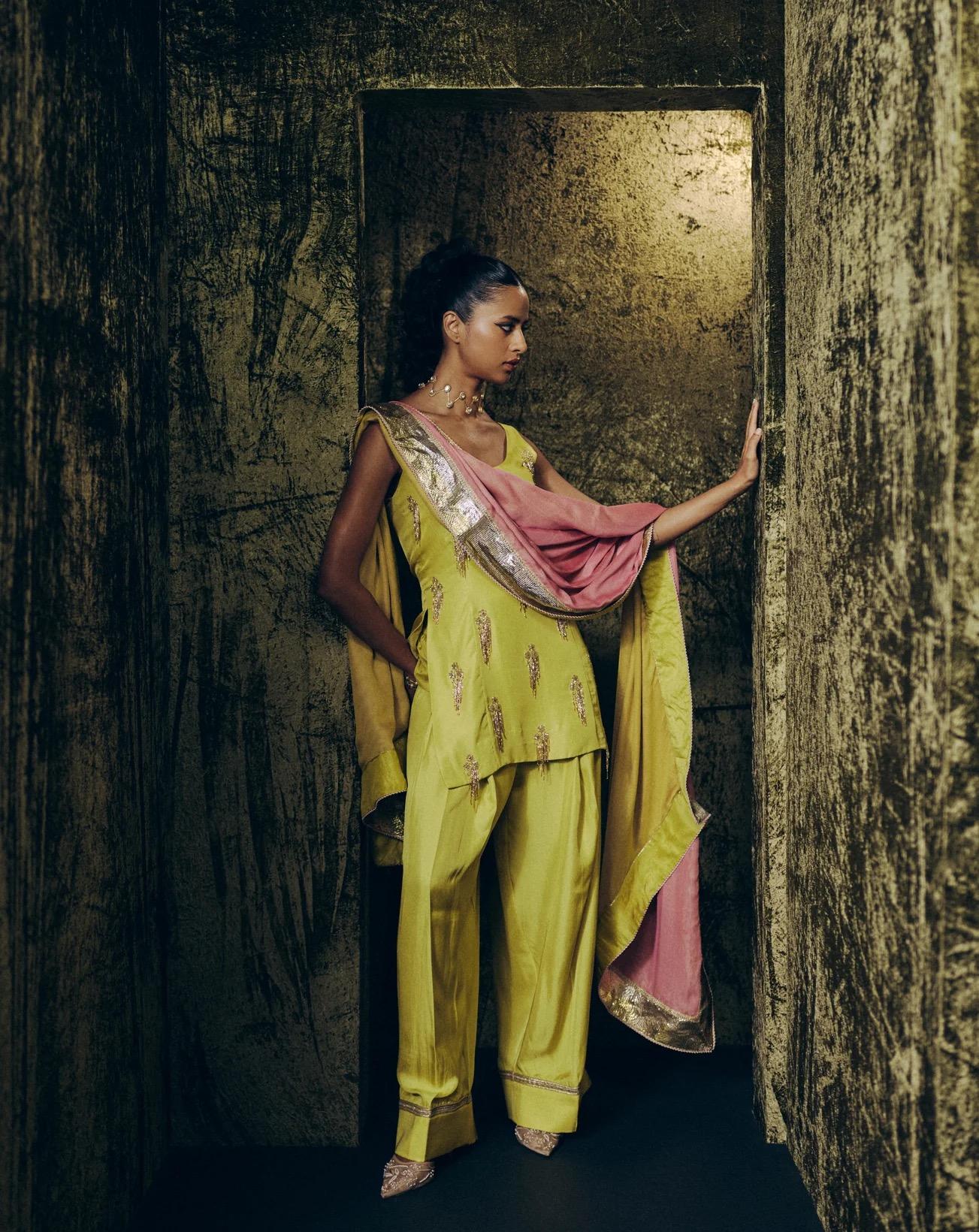 Outfit: Re-ceremonial, Zoya set in Chartreuse, Rs. 69,500