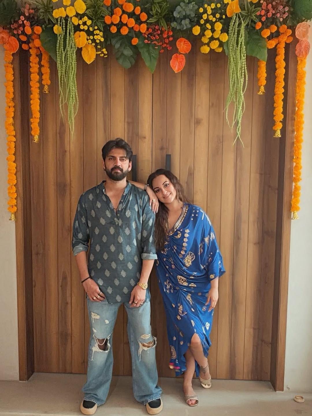 Sonakshi Sinha brings relaxed festive charm in a cobalt blue draped silhouette. Paired with minimal accessories and effortless styling, the look feels modern, comfortable, and perfect for a laid-back Lohri celebration where ease takes centre stage.