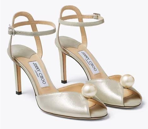 2. JIimmy Choo Sacora 85 Shimmer Suede Sandals with Pearl Embellishment for Rs 56,000