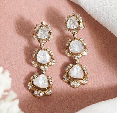 EARRINGS: RANIWALA Isabeau Polki Diamond Earrings, ₹ 210,639