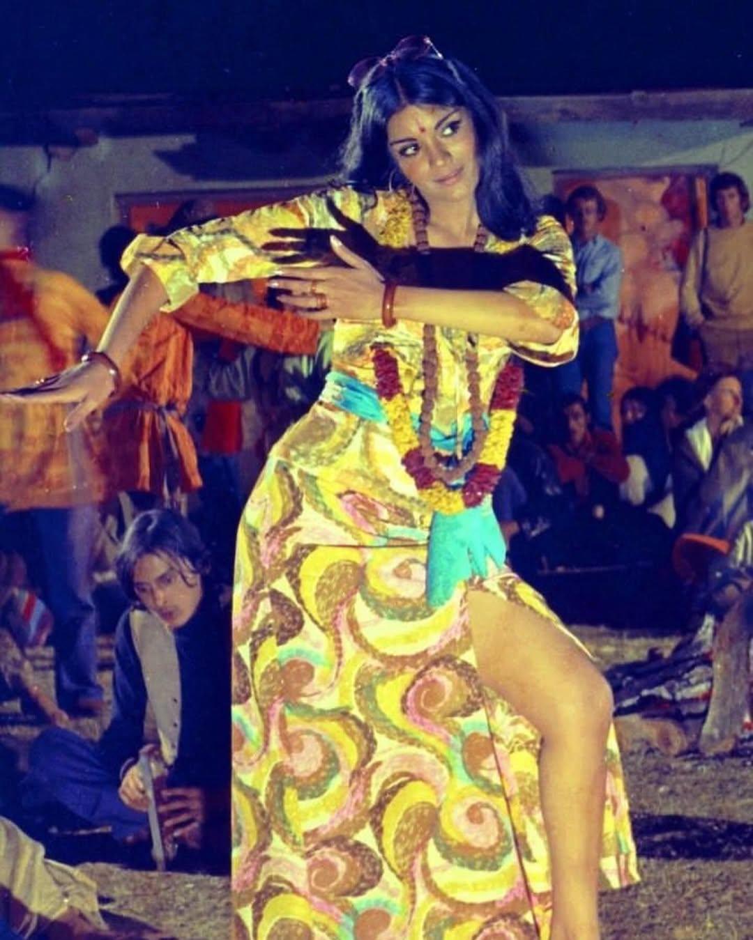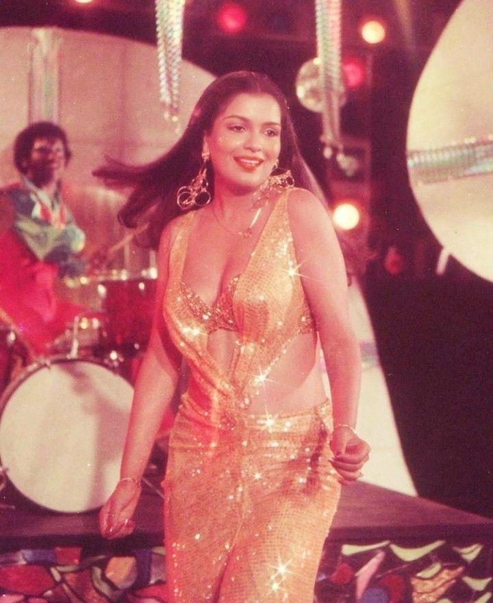 In this film, Zeenat Aman’s costumes blended softer feminine aesthetics; think satin nightwear, pastel florals, ruffled collars and elegant robes — a minimalist yet sensual wardrobe that felt strikingly modern for its time.