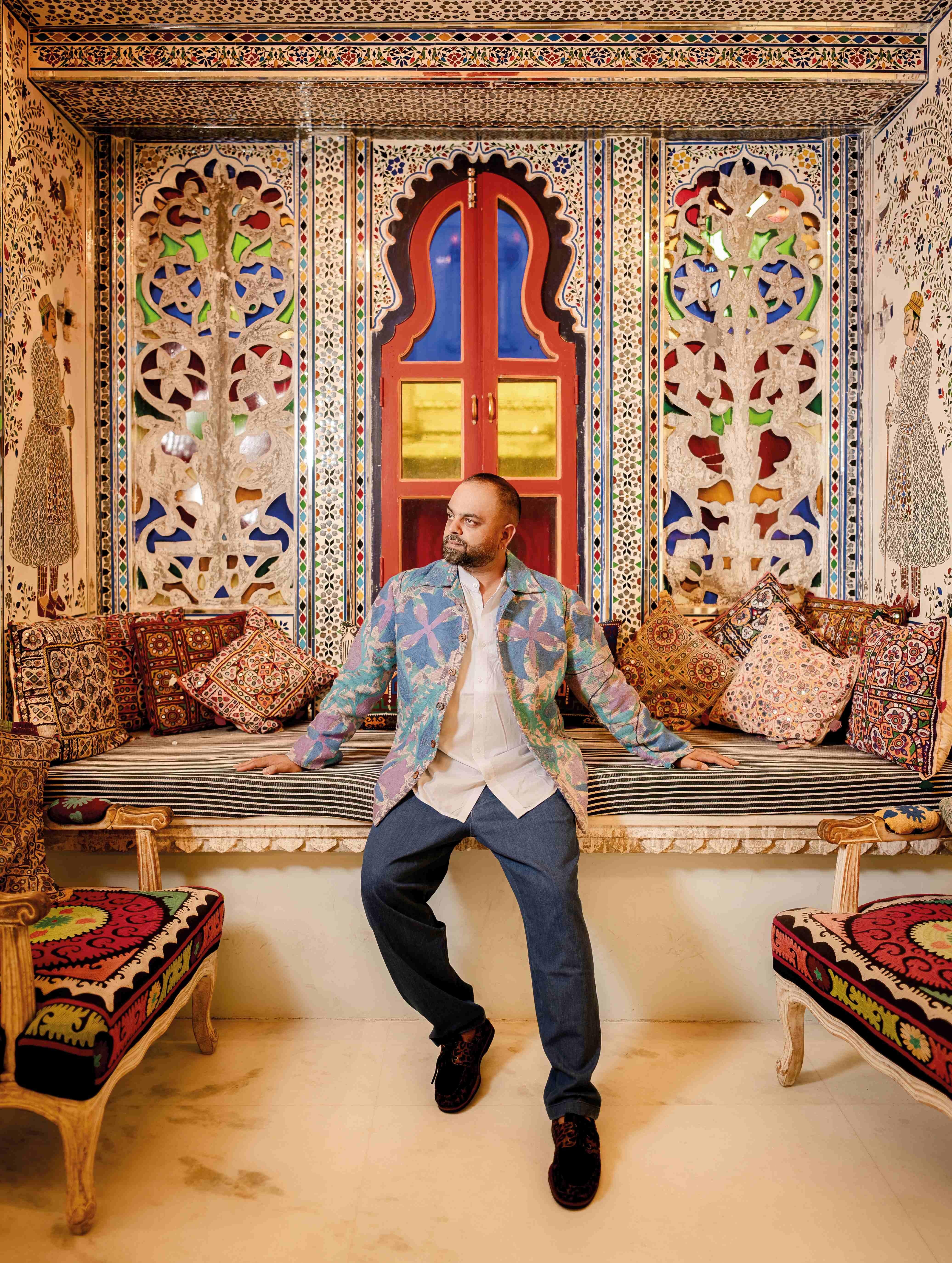 His Ganesh Emporium atelier in Udaipur has the grandeur and antiquity of a 17th-century haveli, boasting 65 galleries and merchandise once associated with royalty who sought the finest artisanal fabrics, handicrafts, and bespoke décor rooted in antiquated aesthetics. Today, Vipul Shah has added a fashiontastic spin to the vintage crafts of the city. From Julia Roberts to Karan Johar, Lisa Ray to Aishwarya Rai Bachchan, all have worn his captivating, richly embellished glocal jackets, while others come looking for his statement boho bags.