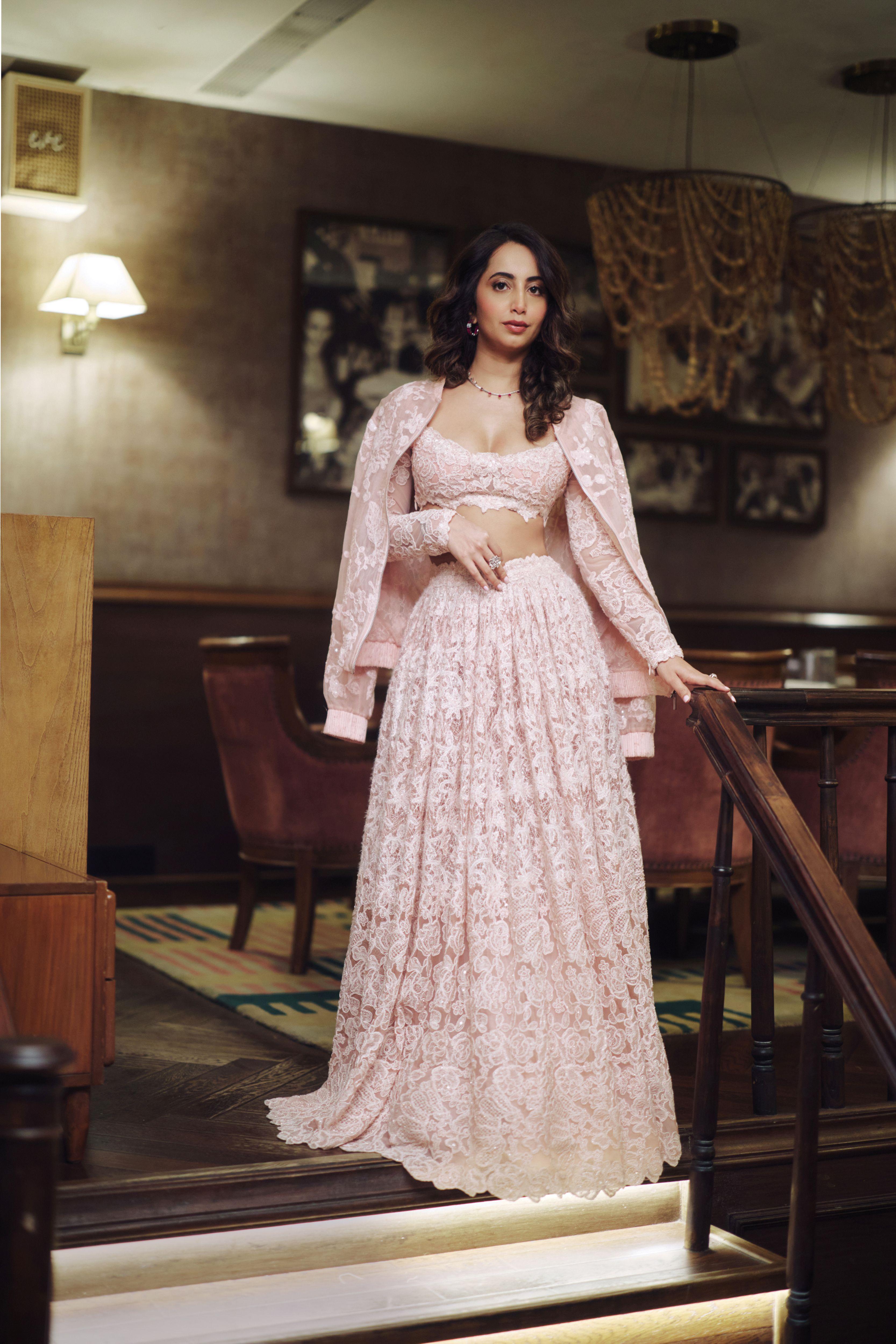“Soft, feminine, and effortlessly wearable, the outfits were beautifully detailed, yet comfortable,” says Alekha, her everyday style rooted in comfort, with a strong boho-chic influence. “You could really see the craftsmanship and the hours of handwork that went into making each piece feel both artisanal and modern. My pink outfit was a favourite — the intricate lace paired with the bomber jacket felt like something I’d wear.”