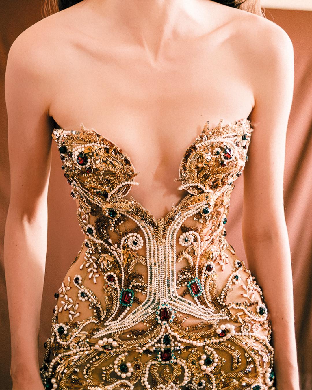 Zuhair Murad: Art and nature are endless sources of wonder for me. I’m fascinated by the geometry of architecture, the delicacy of a flower, and the brilliance of light on water. Embroidery, embellishment, and silhouettes are my way of translating those impressions. Every bead, every stitch is like a brushstroke. Together, they create canvases that move with the body