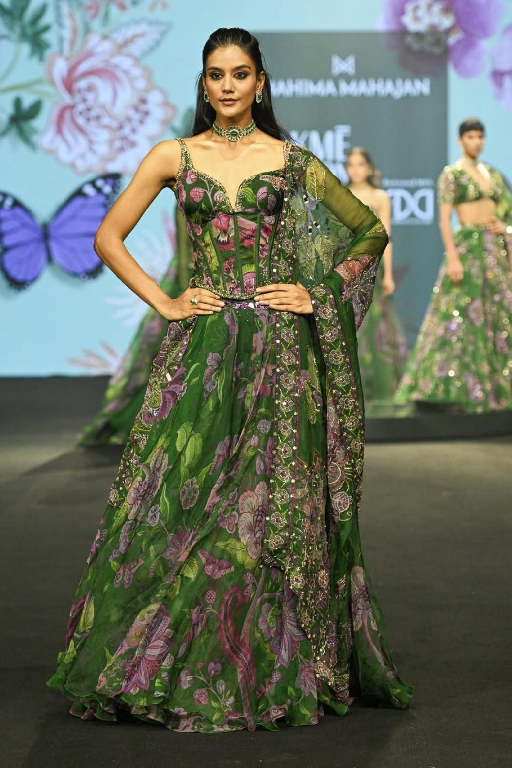 Mahima Mahajan’s FANAH Resort collection, showcased at Lakmē Fashion Week, draws inspiration from the Sufi philosophy of fanā; a journey of love and transcendence where the self dissolves into the divine. Designed for destination weddings and romantic escapes, the collection featured 25 exquisite ensembles, including the showstopper look worn by Vaani Kapoor. With flowing silks, organza, and georgette in pastel and jewel tones, the pieces combined intricate hand-embellishments and signature floral prints. Blending modern silhouettes with timeless craftsmanship, FANAH Resort captured the essence of elegance, emotion, and effortless beauty.