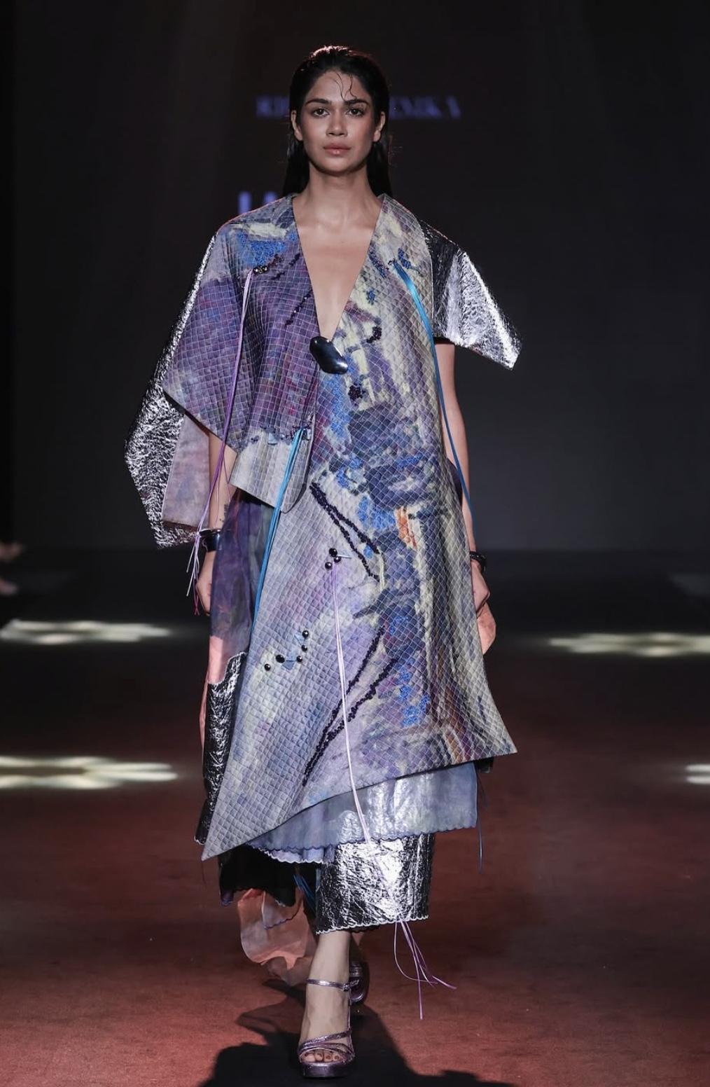 Richa Khemka's runway show, titled Vantage, explored the balance between strength and softness through designs inspired by nature’s contrasts; from the movement of the sea to the stillness of the earth. The collection featured a blend of rich velvets, sheer organza, metallic fabrics, and detailed embroidery with beads and pearls. With its play of light and texture, Vantage reflected a sense of duality — resilience and delicacy, boldness and grace — brought together in harmonious form.