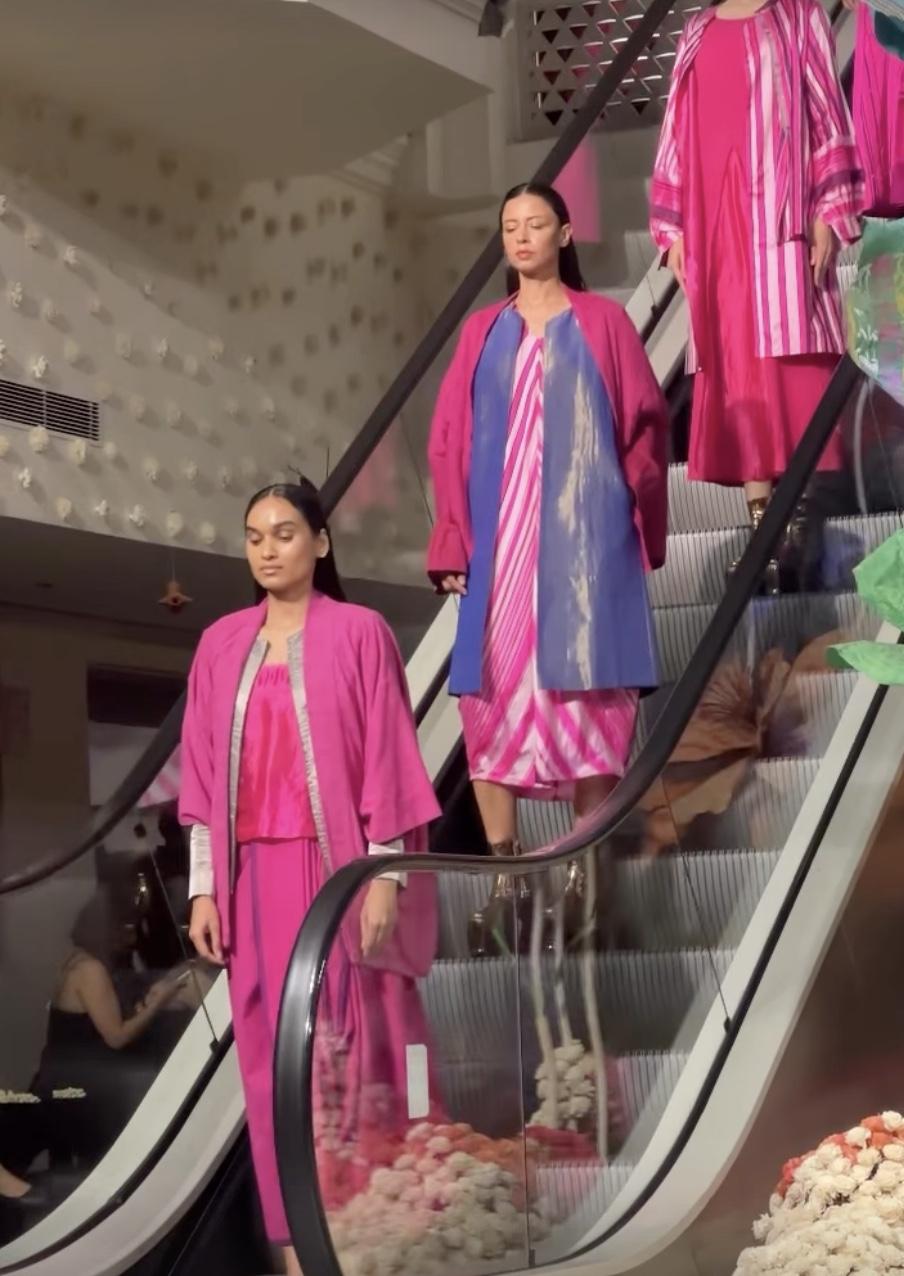 The opening show of the event was a joint showcase between the designers, held at The Kunj. What makes the location even more fitting as a fashion venue is that the new retail-cultural complex in Vasant Kunj is India’s first permanent mall dedicated exclusively to handicrafts, handlooms, and artisan-made goods.