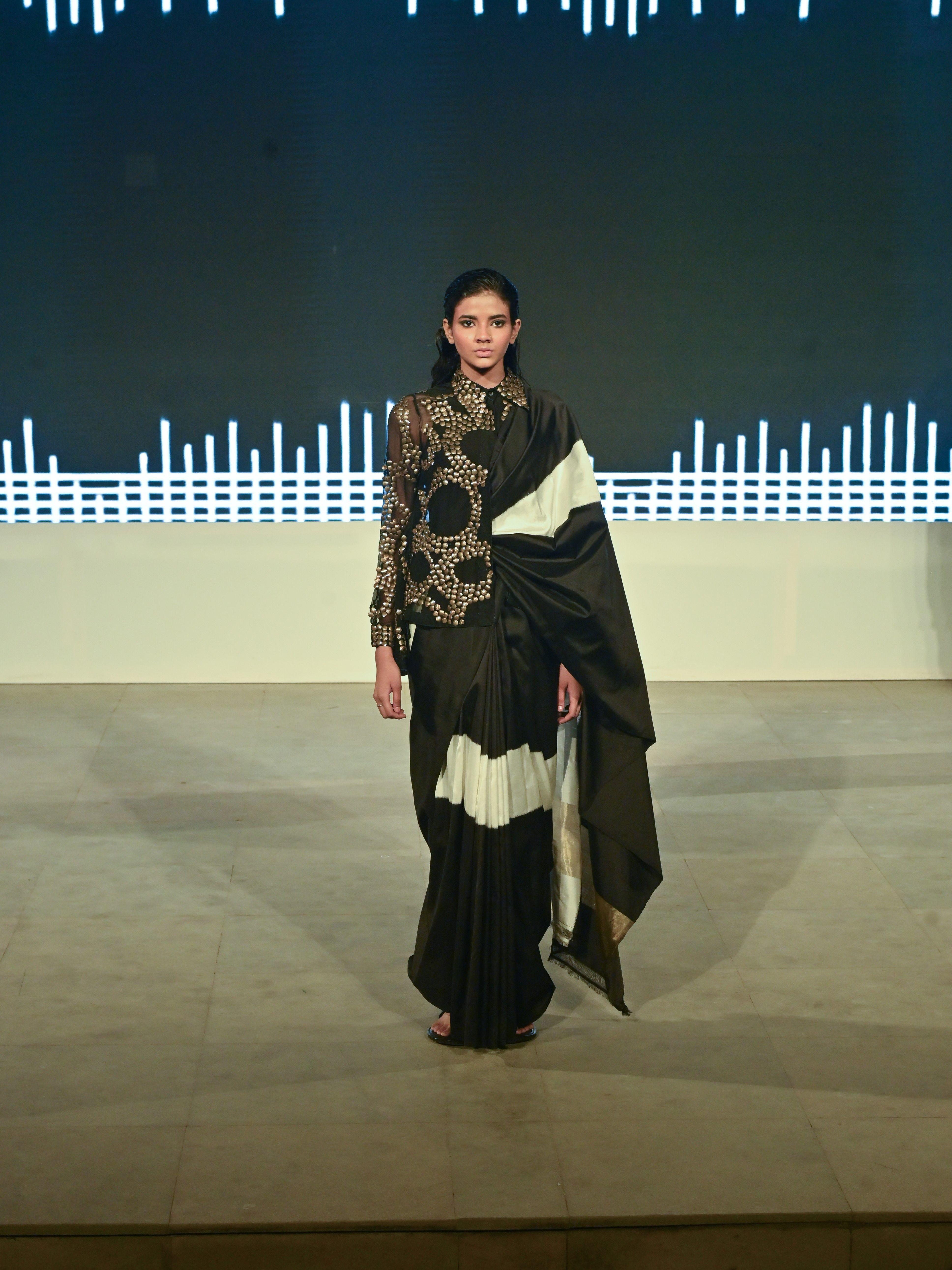 Next, Advaya’s show highlighted heirloom-quality handwoven textiles, defined by nuanced textures, artisanal detailing and a contemporary sensibility, elevated even further with unconventional draping. Abraham & Thakore closed the show in their signature style with a refined exploration of ikat through archival reinterpretations.