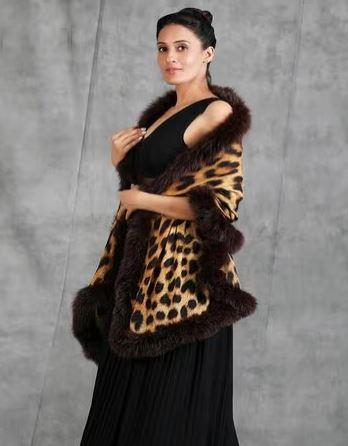 The DUSALA Animal Print handwoven cashmere wool fur stole for Rs.19,800