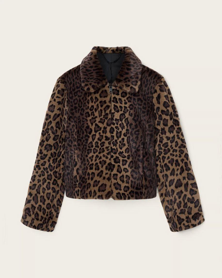 The All Saints Saye faux fur jacket for Rs 30,515 approximately.