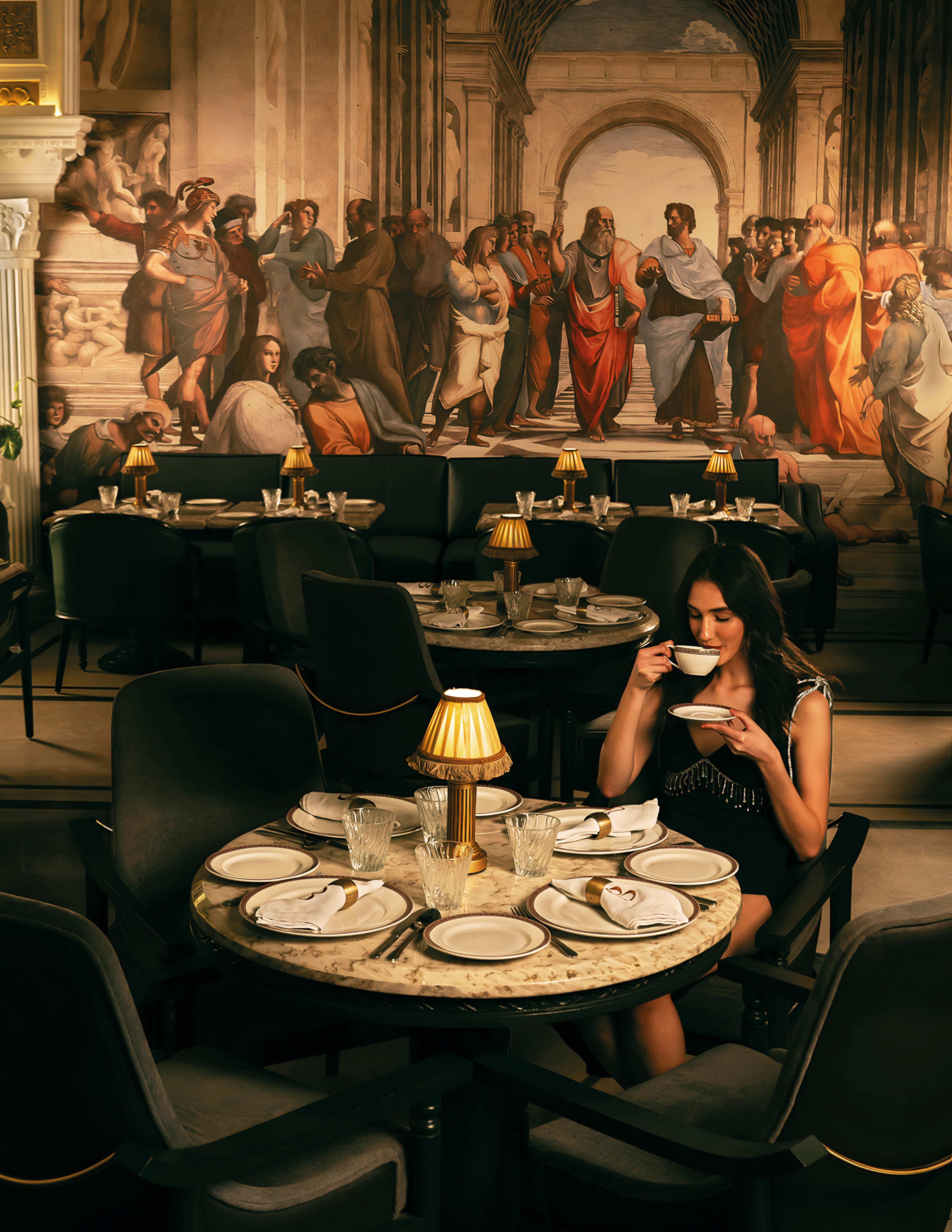 A whopping 10 ft replica of the ‘Laocoön and His Sons’ Vatican sculpture, Thomas Couture’s ‘The Romans in their Decadence’ painting, a giant poster of Raphael’s ‘The School of Athens’ fresco, and ‘Assumption of the Virgin’ by Titian are all housed in a 11,000 sqft restaurant spread over two floors. Begeterre, which offers a globally inspired menu, isn’t just an art-inspired restaurant but a museum-esque dining destination. Three butter-chicken-loving Delhi boys — Sanyam Kalra, Daksh Bali and Prateek Chaudhary — conceptualised this ambitious project, inspired by “the European Renaissance era, celebrated for its emphasis on beauty, craftsmanship, balance, and intellectual depth.”