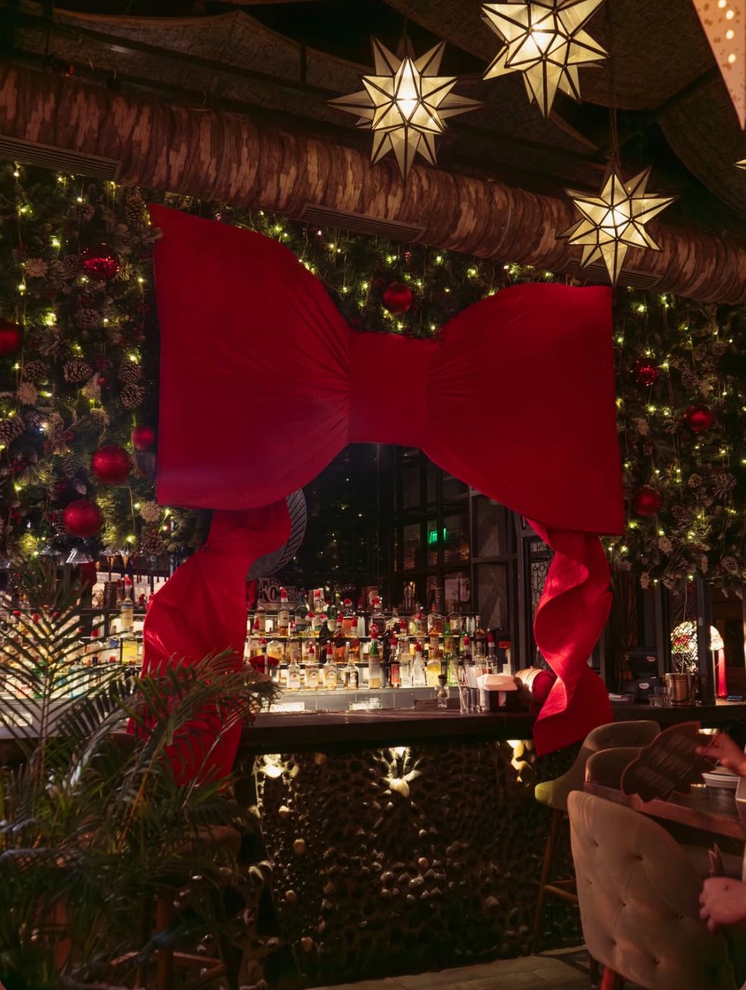 Tattva Bar and Café’s holiday ambience is all about festive warmth with a touch of playful sophistication, where oversized red bows and glowing star lanterns set a celebratory tone. The décor mixes rich seasonal foliage with glimmers of light that reflect off the bar and dining spaces, making every corner feel ready for Christmas cheer. It’s a setting that elevates even casual evenings into a merry, spirited experience; ideal for festive gatherings with friends and family.