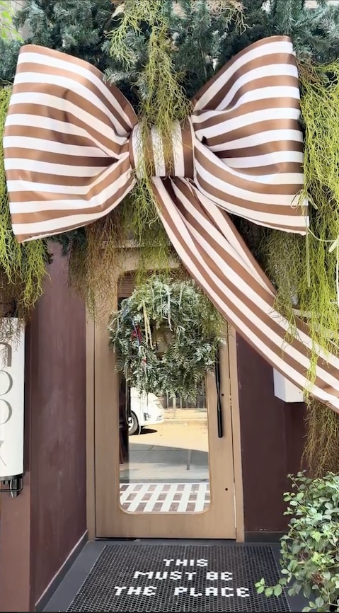 At The Nook, festive touches turn the entrance into a holiday moment, with oversized bows and wreaths framing the doorway against a backdrop of greenery. The seasonal styling feels stylish yet understated, blending seamlessly with the restaurant’s warm aesthetic while bringing in classic Christmas charm. As guests step inside, the décor invites them into a cosy, celebratory space.