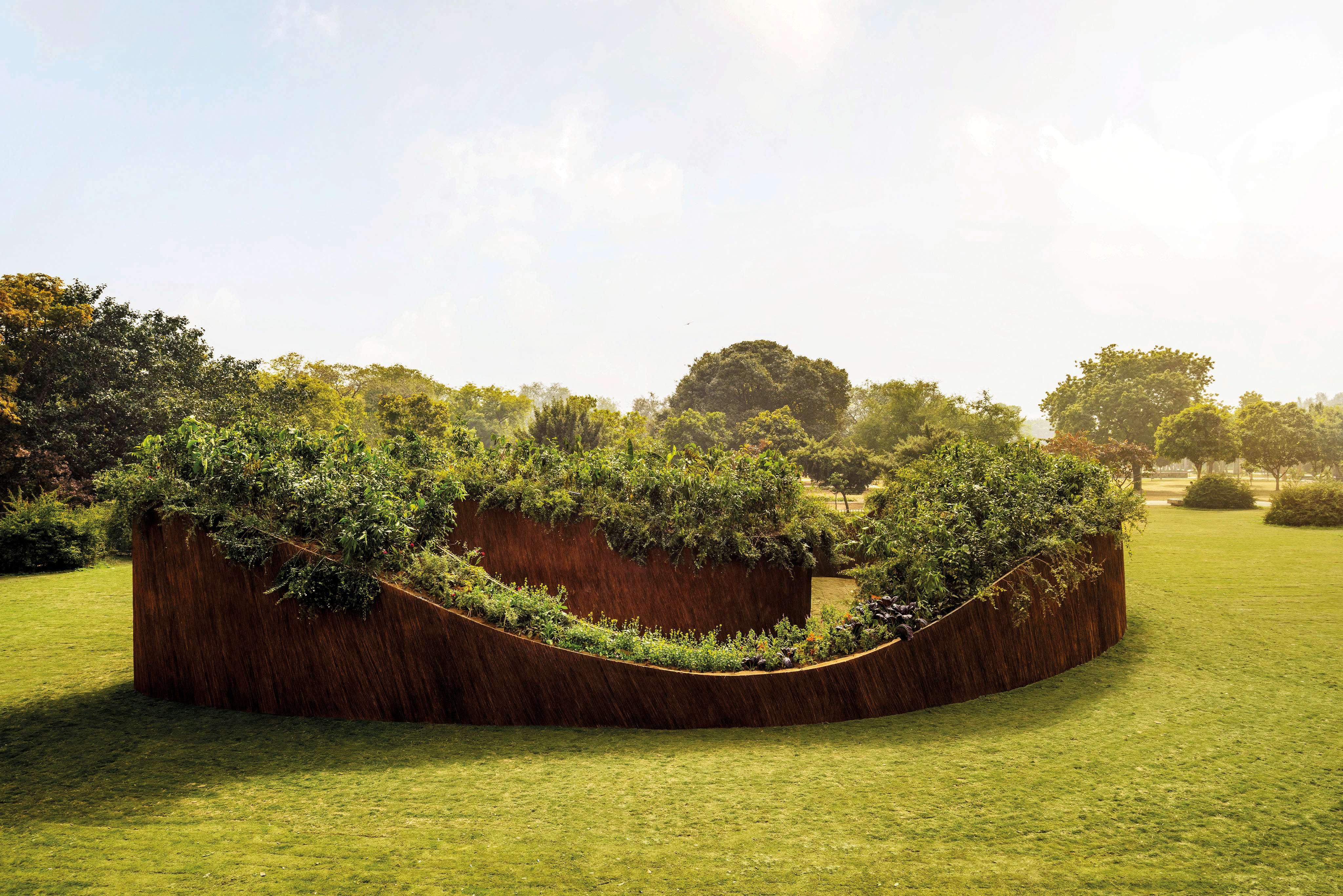 At its core lies an idea of sanctity — not as ritual, but as restraint. The spiral structure is built from upcycled lantana camara, an invasive shrub that was introduced to India through Portuguese and British colonial trade in the 18th century. Lantana now covers more than 13 million hectares and threatens nearly half of India’s forest cover.