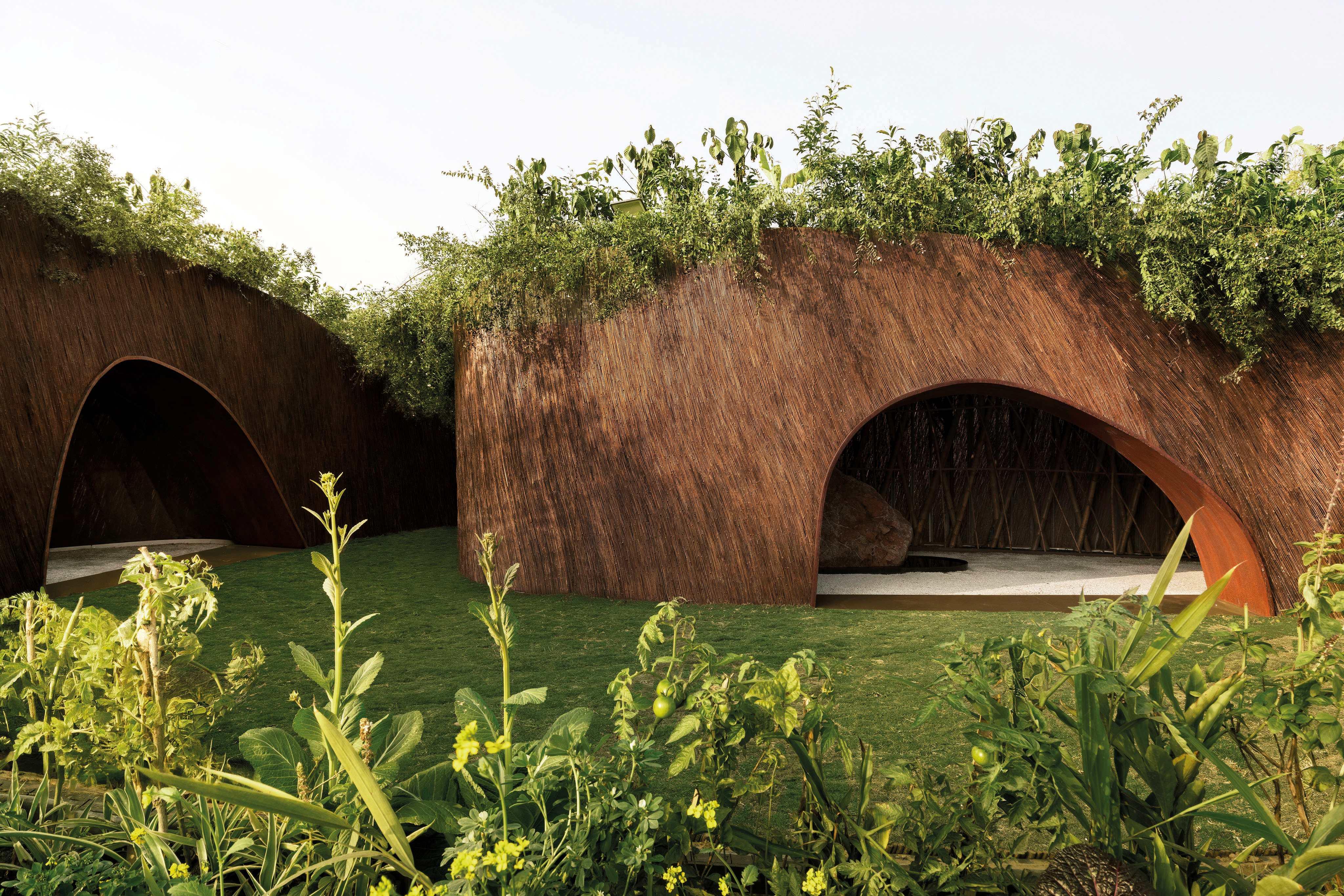 Above this framework, a living canopy of more than 40 native plant species — a mix of edible, medicinal, and culturally significant varieties — forms a functioning micro-habitat. By layering invasive lantana beneath and indigenous species above, the Pavilion embeds restoration into its structure, recognising India’s colonial ecological past even as it gestures toward renewal.
