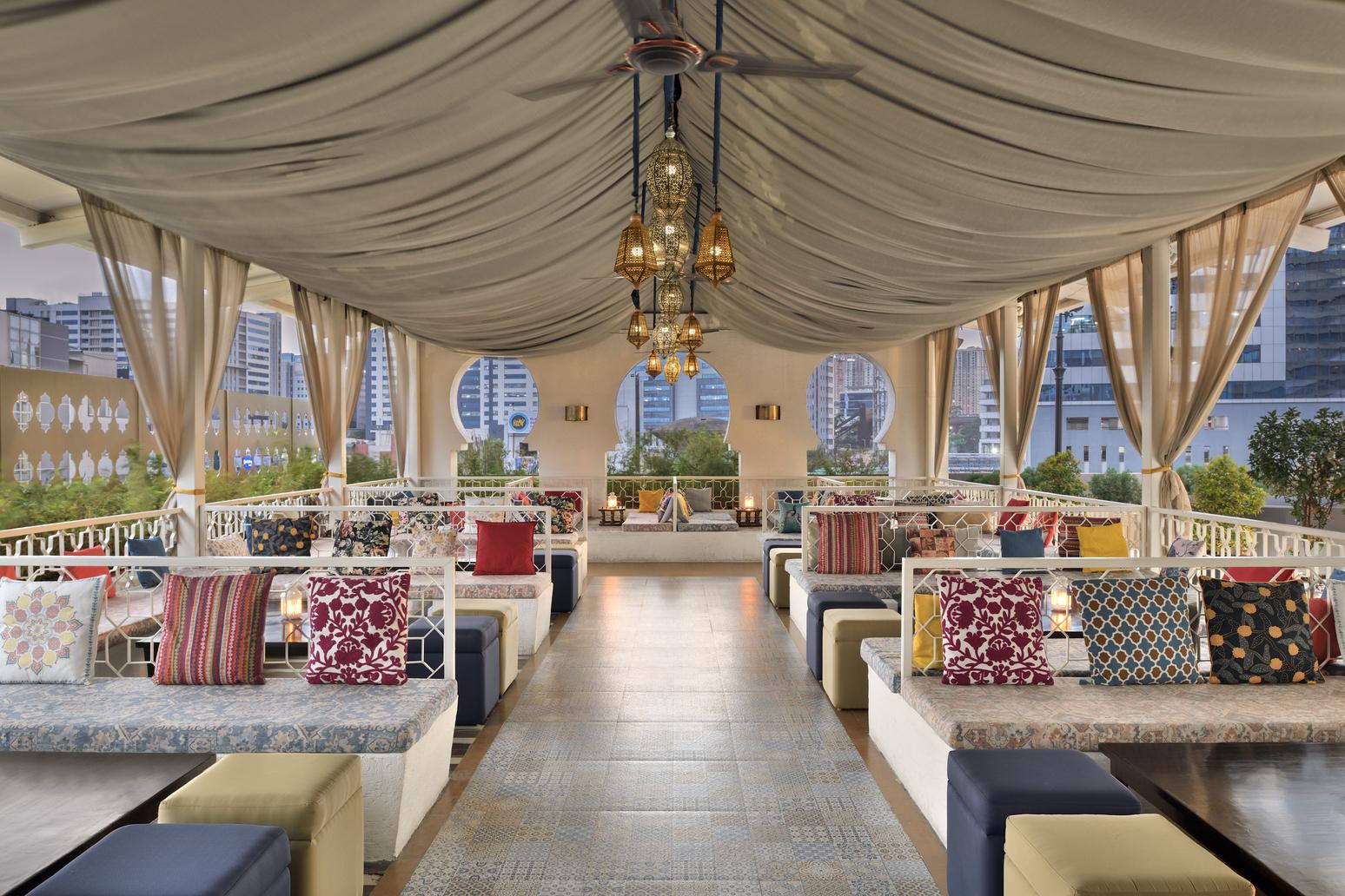 An open-sky Holi Mela pairs Thandai bars, live golas and interactive experiences with a specially curated festive menu. Set amid lush greenery, it’s a relaxed yet vibrant countryside celebration. Expect folk-inspired décor and laid-back seating areas, where the atmosphere balances rustic charm with contemporary festivity.
