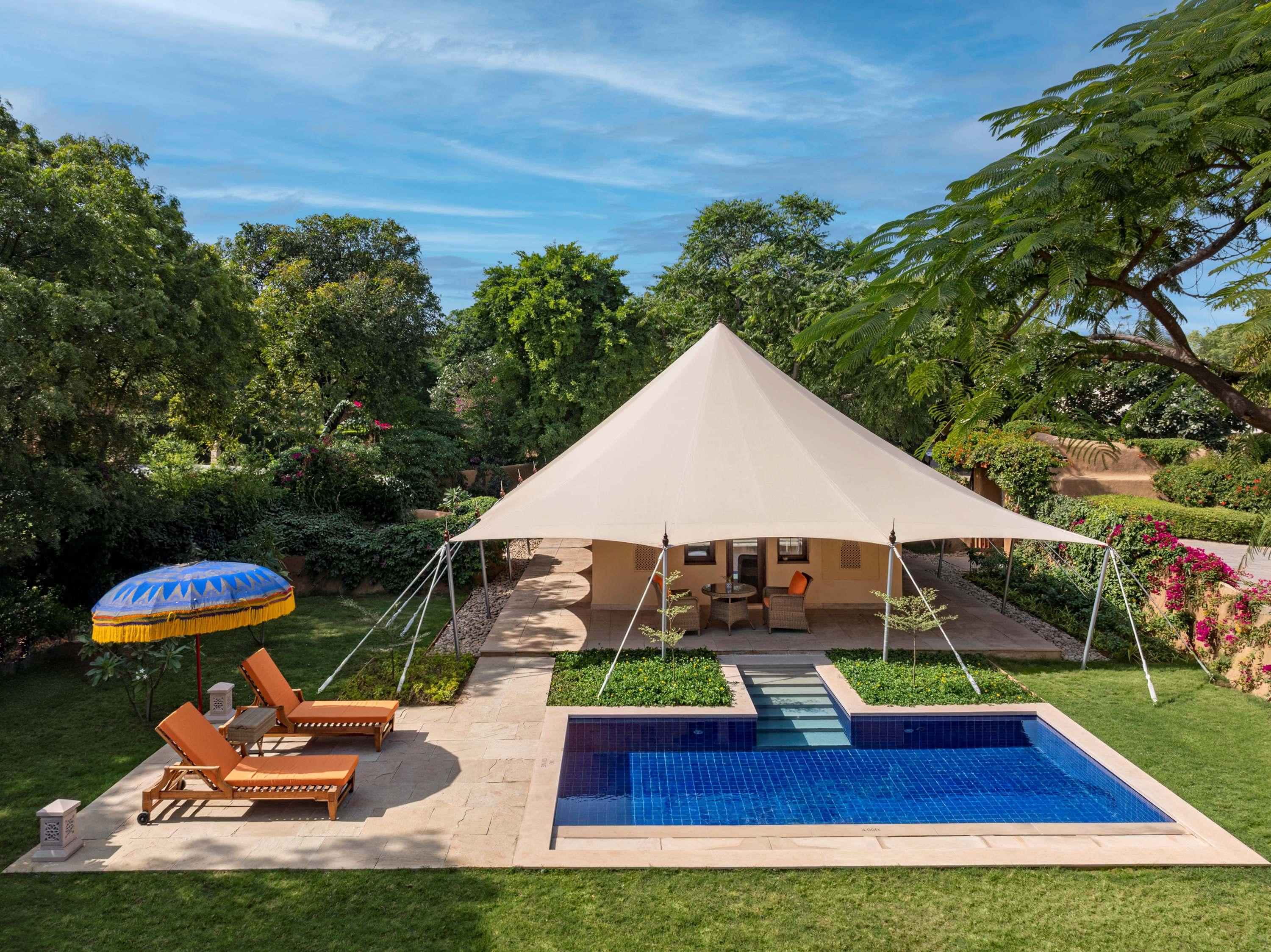 The Oberoi Rajvillas, Jaipur, introduced a thoughtfully designed new accommodation category that blends the charm of Rajasthan’s royal tented living with contemporary luxury and discreet modern comforts. The new luxury tents with a private pool is set within the resort’s expansive 32-acre oasis of landscaped gardens, reflection pools and architecture conceived in the style of a traditional Rajasthani fort. This new category offers families, honeymooners and wellness seekers an exceptional sense of privacy, tranquillity and connection with nature.