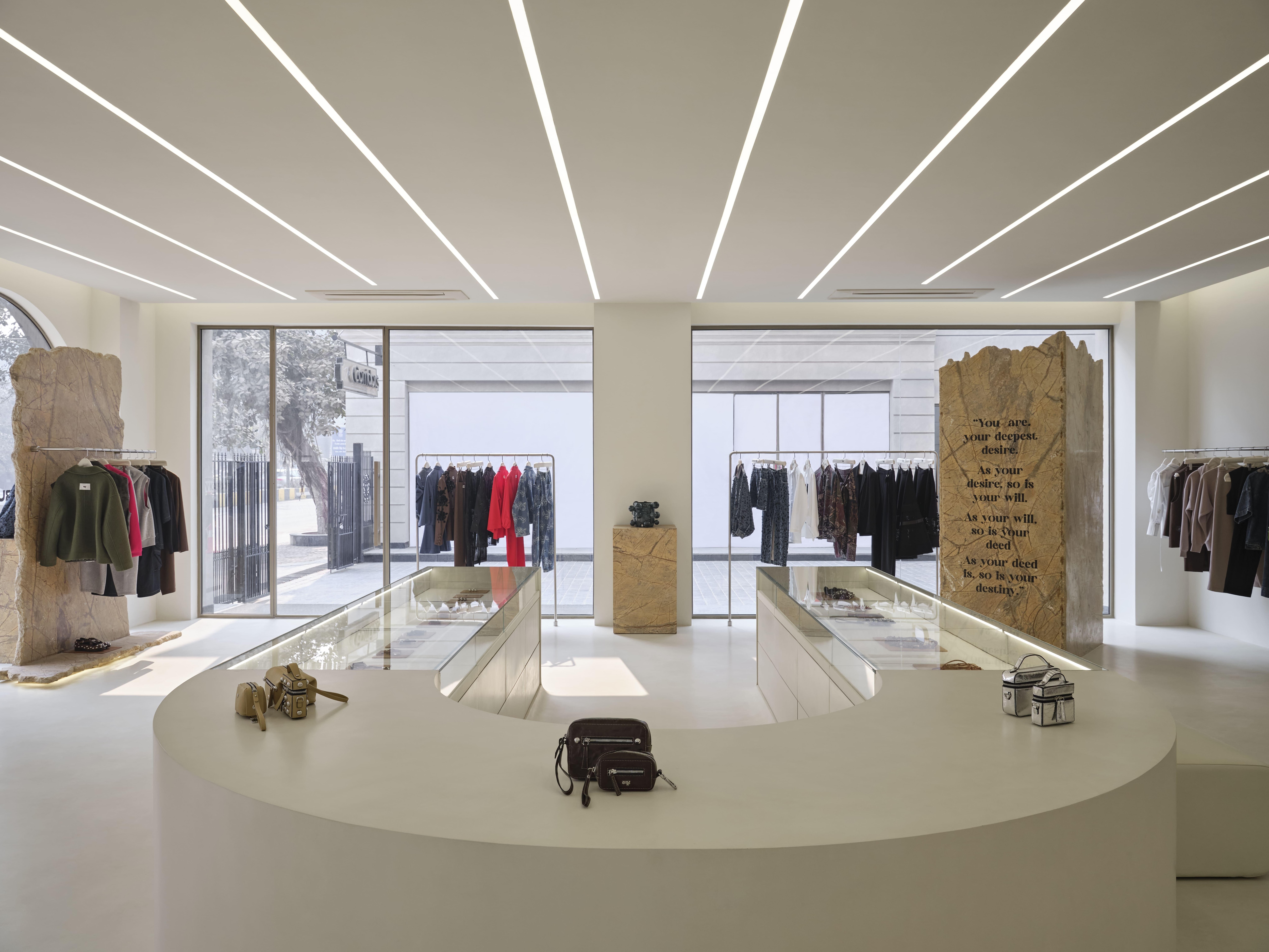 In the season of store launches, many designers have stepped into a new era. Located at The Corridors in Chattarpur, Dhruv Kapoor opened his first flagship in New Delhi. The store feels less like a conventional boutique and more like an immersive extension of Kapoor’s design language—where architecture, scent, and sound come together to shape a sensory experience. The space invites visitors to slow down and engage meaningfully with the collections, which span everything from the brand’s sharply tailored pieces to relaxed silhouettes, accessories, and lifestyle objects.