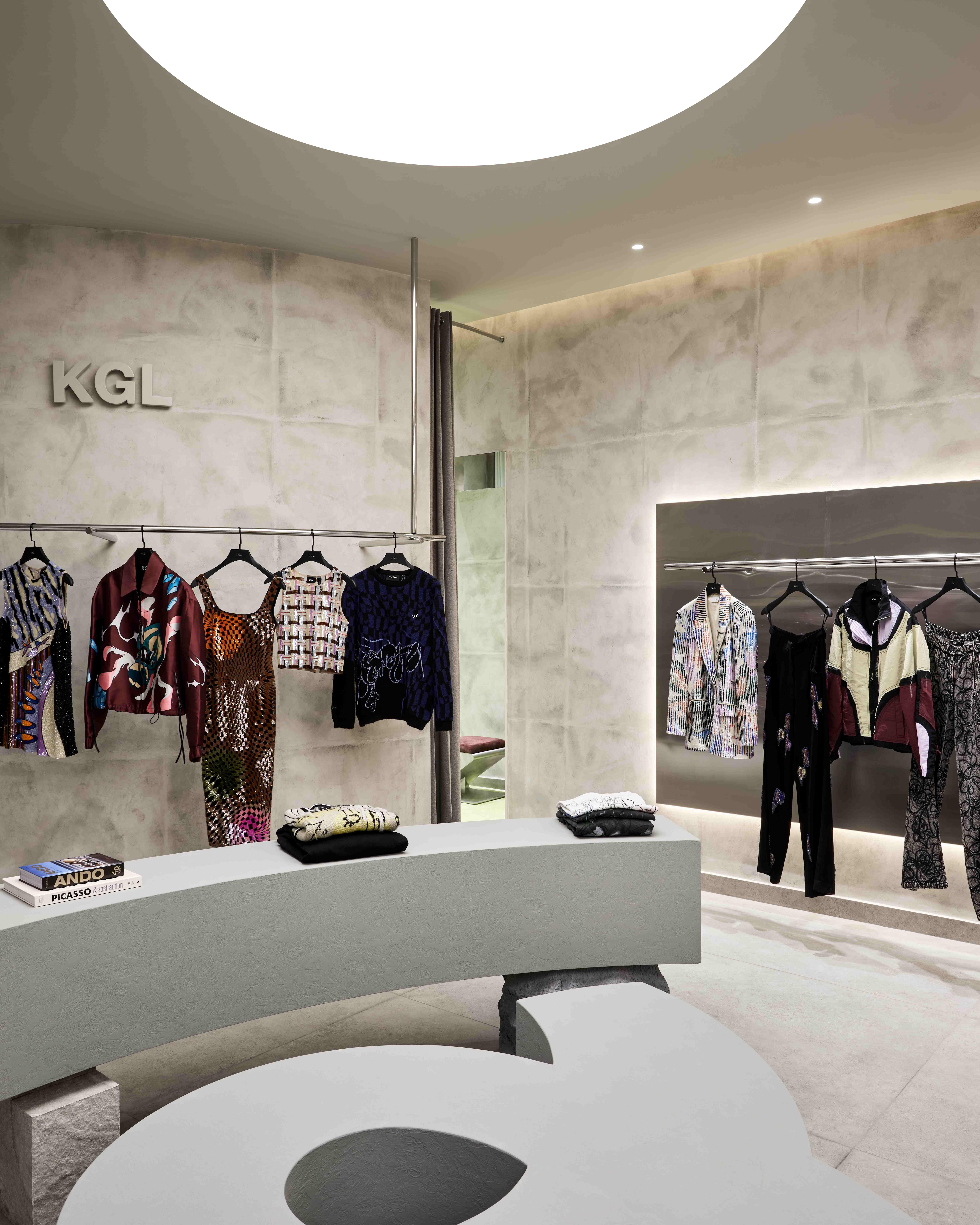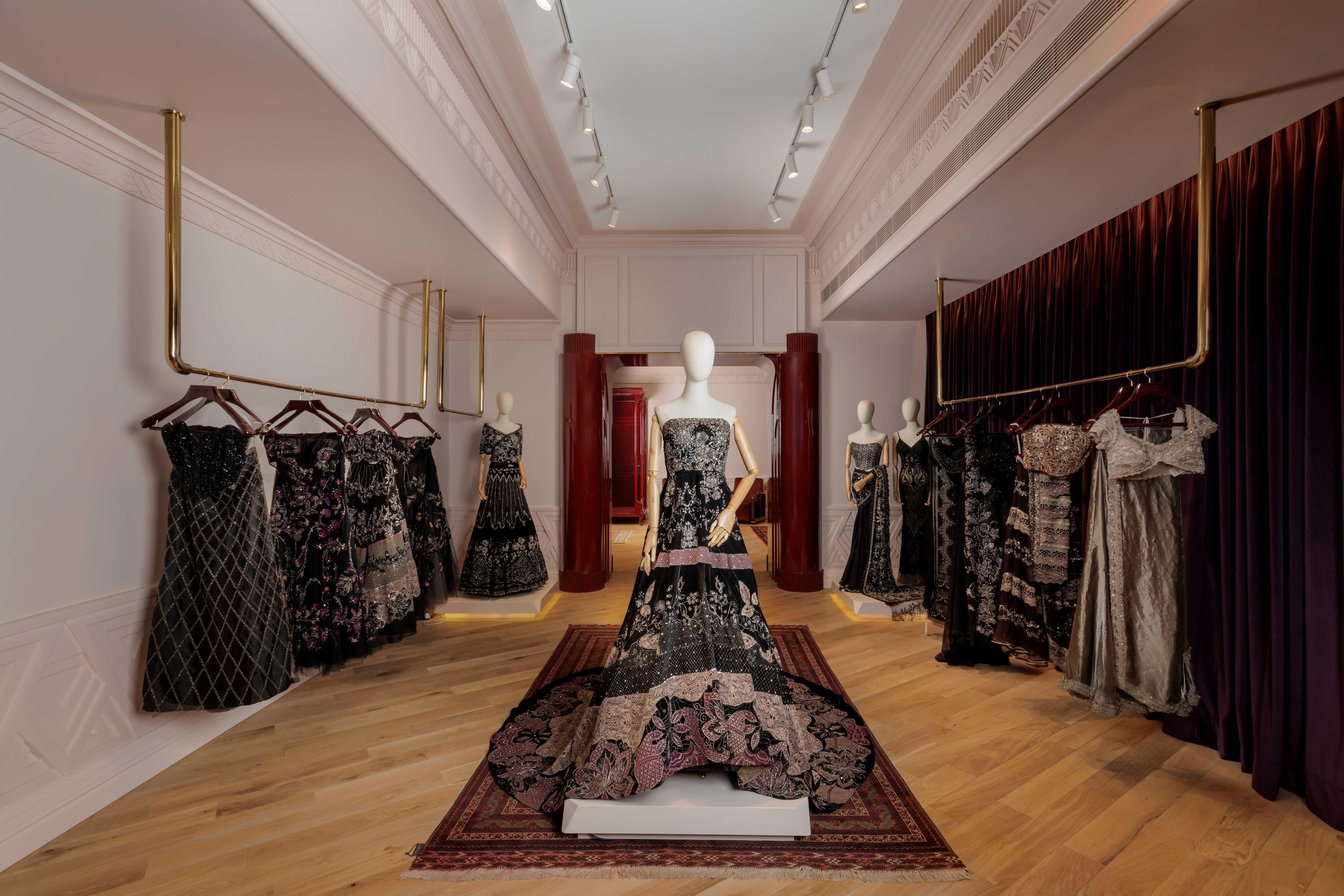 Where grandiose charmed visitors to these aforementioned stores, Kanika Goyal's minimal fortress in Dhan Mill stood as a stark contrast that perfectly highlighted her edgy, urban aesthetic on the other hand. The space embraces an industrial-luxury mood with sleek textures, sculptural racks, and minimalist accents, framing Kanika’s signature deconstructed tailoring and bold separates.