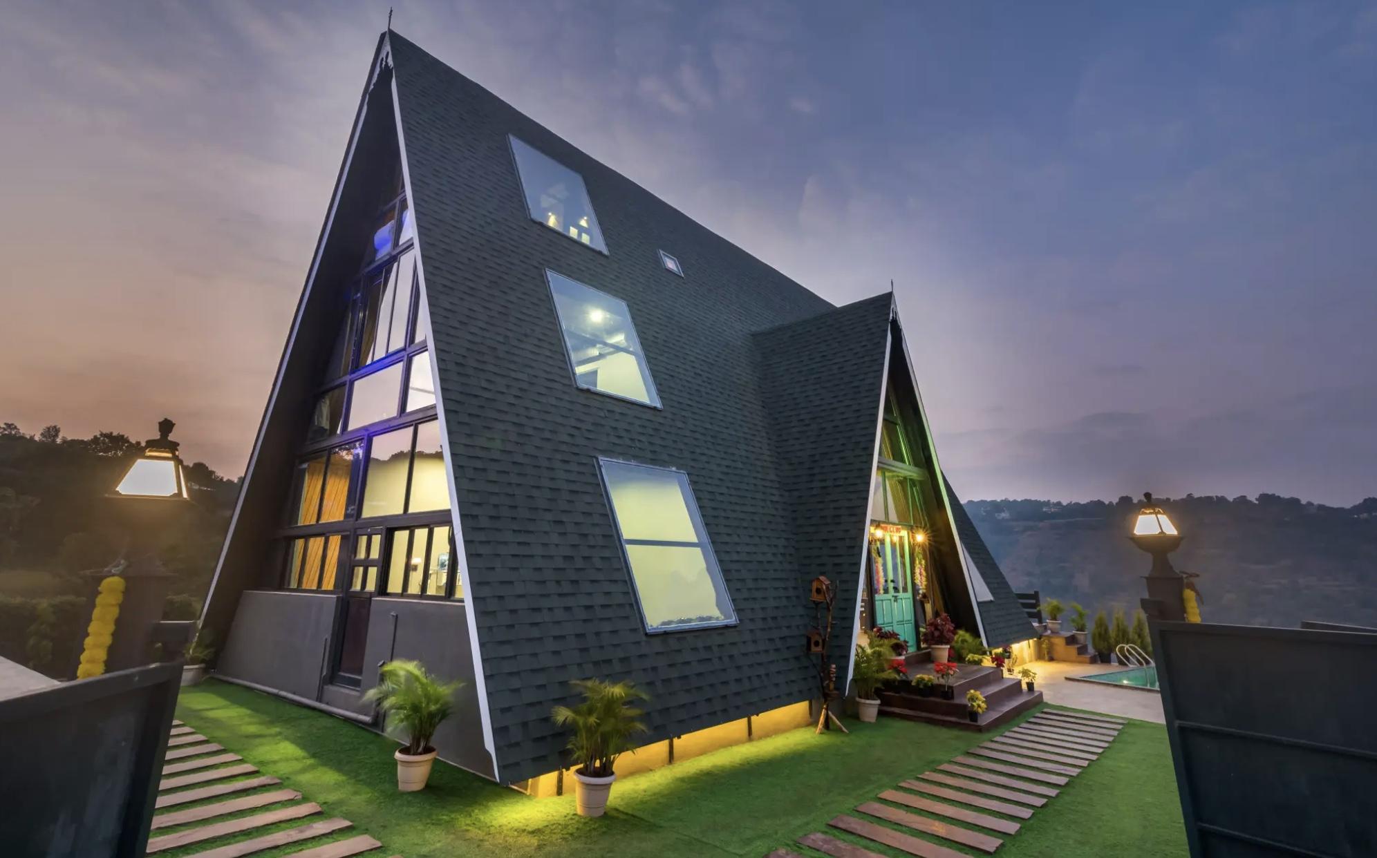 Set dramatically along a hillside, SaffronStays A Vantage is a distinctive pyramid-inspired villa that commands sweeping views of Panchgani’s lush valleys. With expansive glass walls designed to draw the outdoors in, the home is all about letting the scenery take centre stage. From laid-back barbecue nights by the infinity pool to slow, peaceful mornings spent watching the hills come alive, it offers the rare feeling of having the mountains entirely to yourself—perfect for a memorable long-weekend escape in Maharashtra.