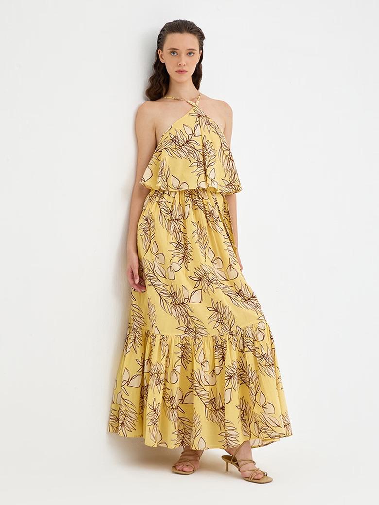 22. Yellow Tropical Print Halter Maxi Dress by Cover Story