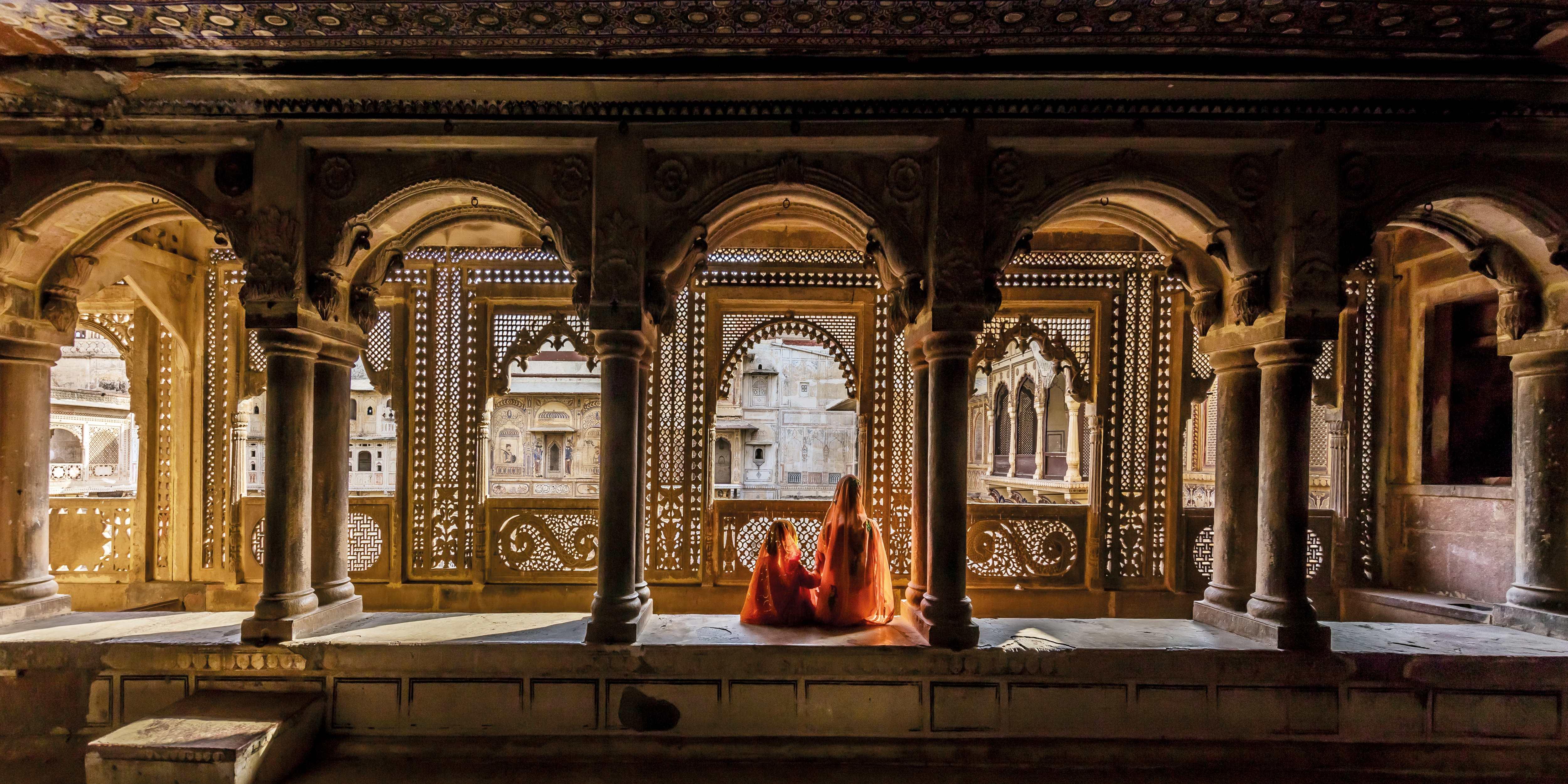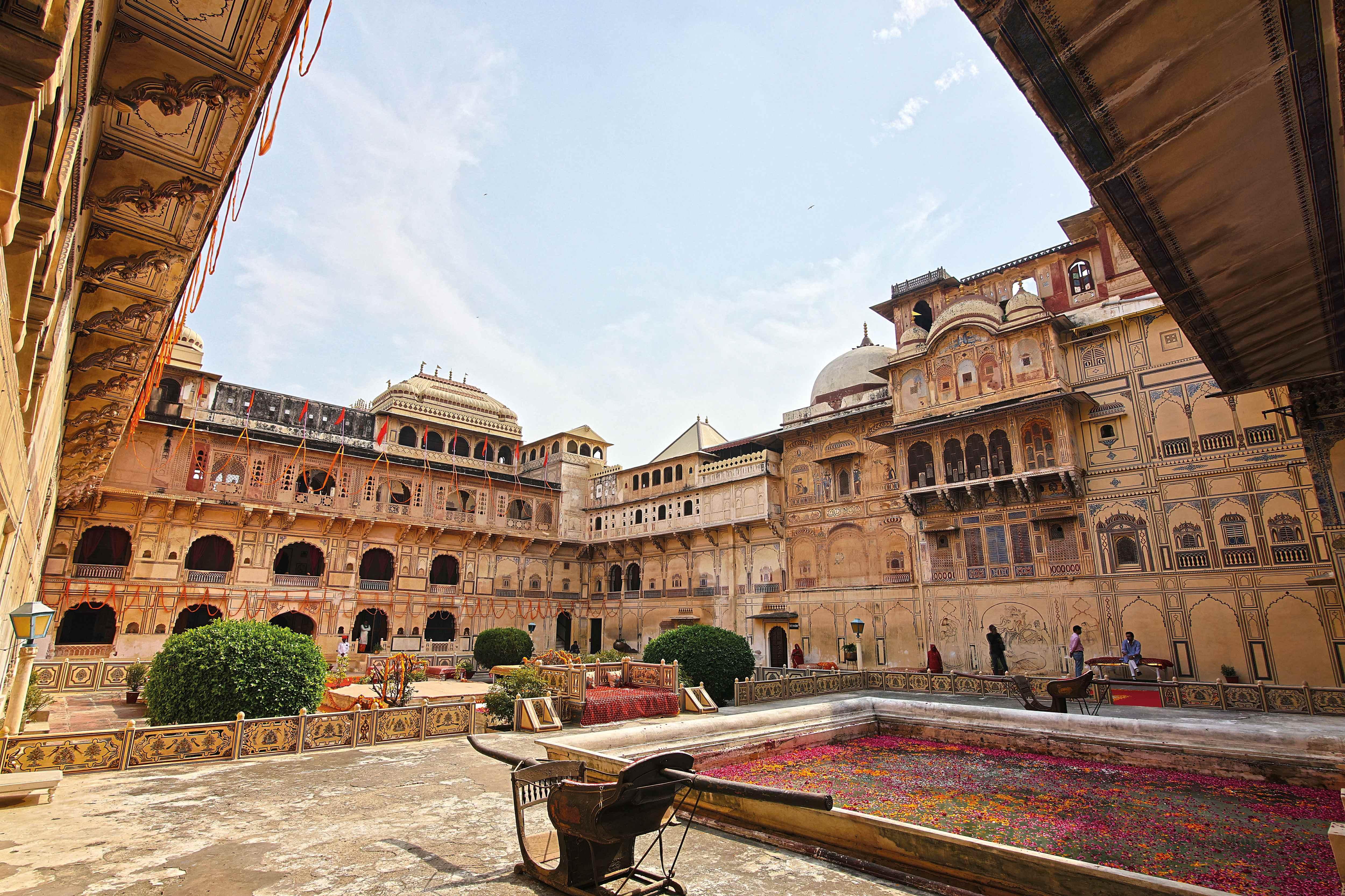 To reach the citadel, you must first trudge through the old city, along quaint shops selling lacquer work bangles and continual processions of Krishna bhakts on their way to the Madan Mohanji Temple that’s enshrined within the palace.