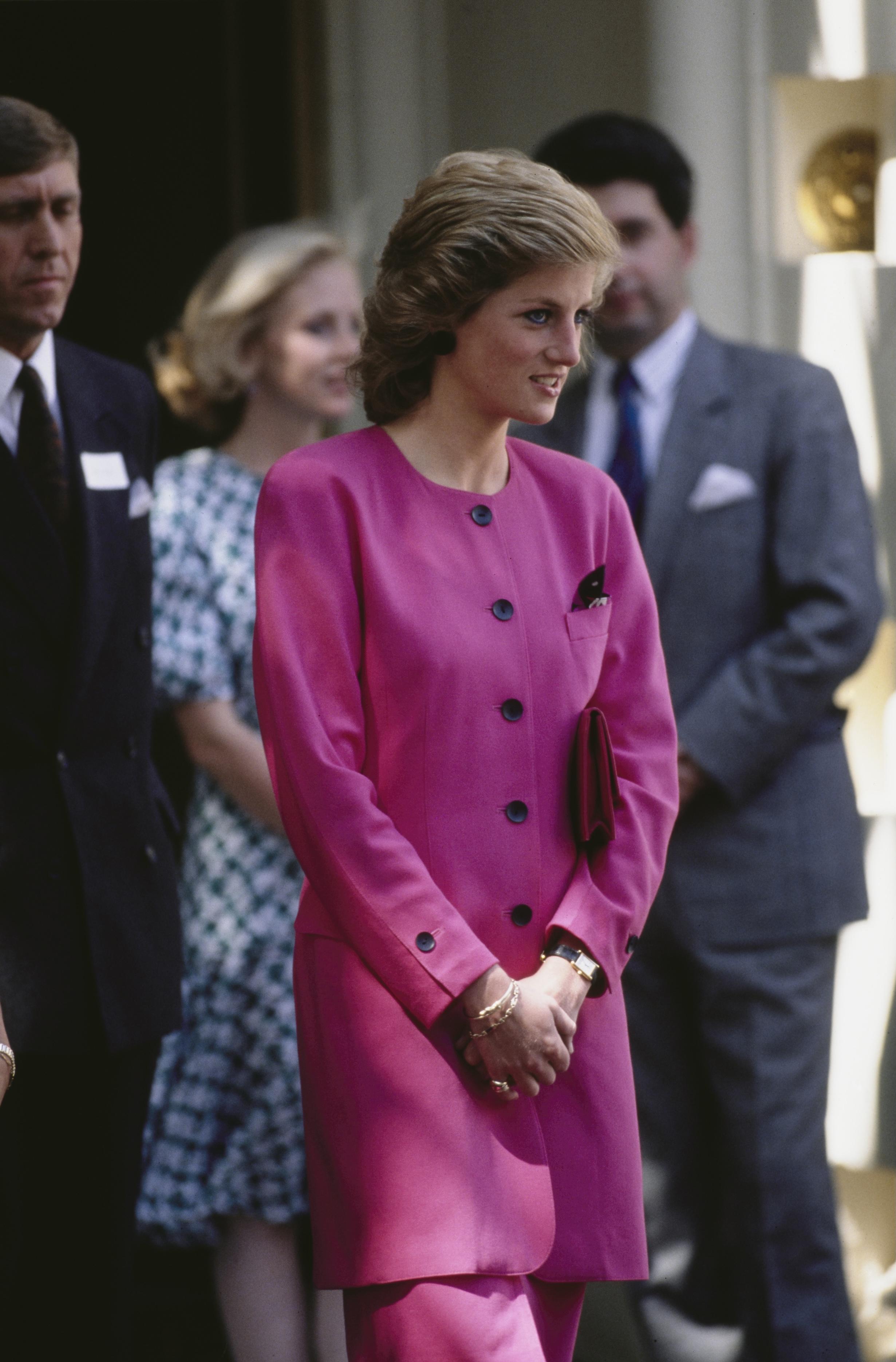 As per The Princess Diana Museum, the pink wool suit in question was worn by her on multiple public occasions from 1988 until 1990. She too paired the designer ensemble with black accessories but has been captured taking the monochrome route as well with a pink purse. It went to be donated to a local charity store to raise funds for her supported charities, where it was then preserved by the store owner.