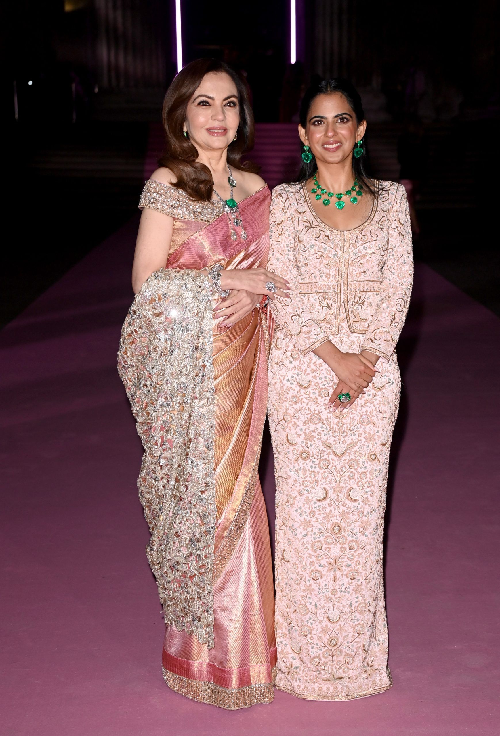 Co-chair Isha Ambani wore a hand-embroidered zardozi jacket and skirt by Abu Jani-Sandeep Khosla