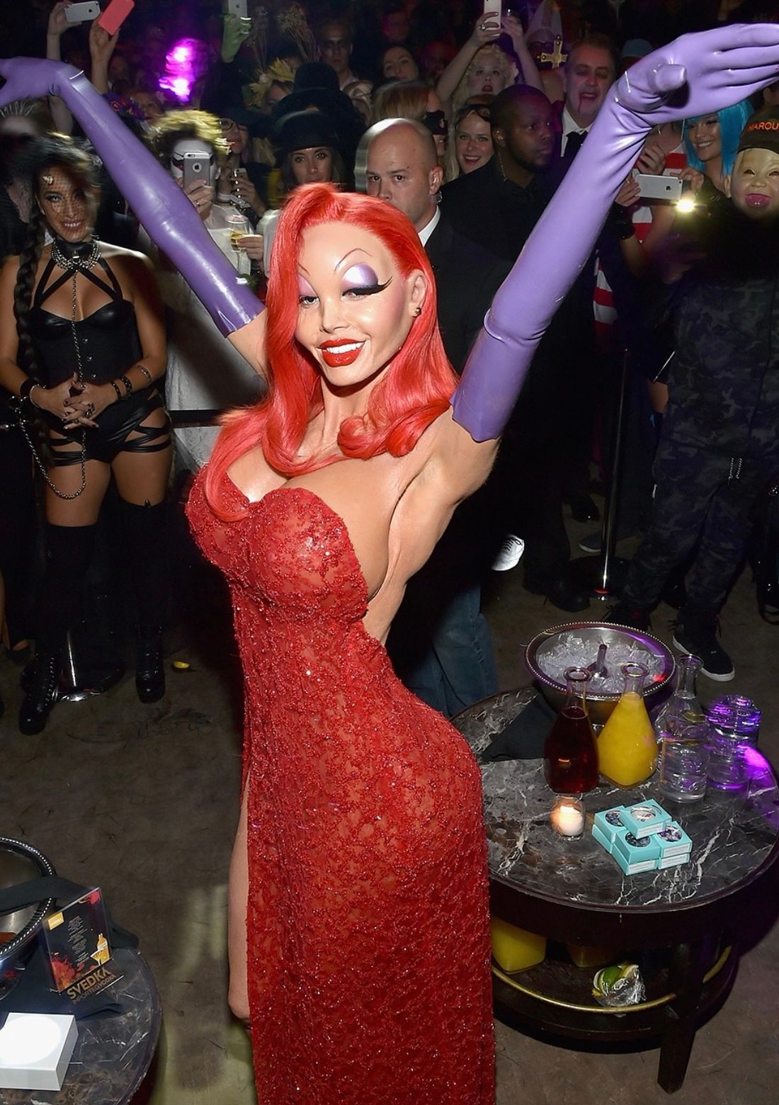 She dressed as the fictional movie character Jessica Rabbit in a gown designed by Christian Siriano